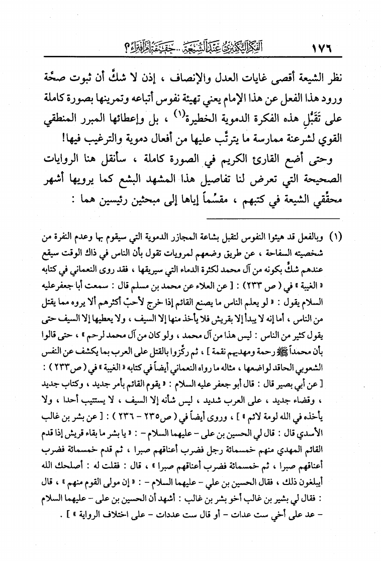 نام کتاب : الفكر التكفيري عند الشيعة حقيقة أم افتراء دراسة موثقة من مرويات الشيعة وتقريرات علمائهم أساساً ومحوراً لها في لفاطة اللثام عن هذه القضية الخطيرة نویسنده : عبد الملك بن عبد الرحمن الشافعي جلد : 1 صفحه : 176