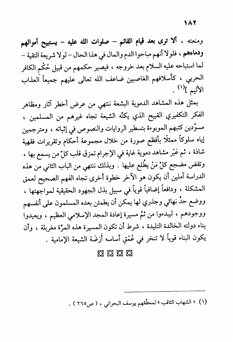نام کتاب : الفكر التكفيري عند الشيعة حقيقة أم افتراء دراسة موثقة من مرويات الشيعة وتقريرات علمائهم أساساً ومحوراً لها في لفاطة اللثام عن هذه القضية الخطيرة نویسنده : عبد الملك بن عبد الرحمن الشافعي جلد : 1 صفحه : 182