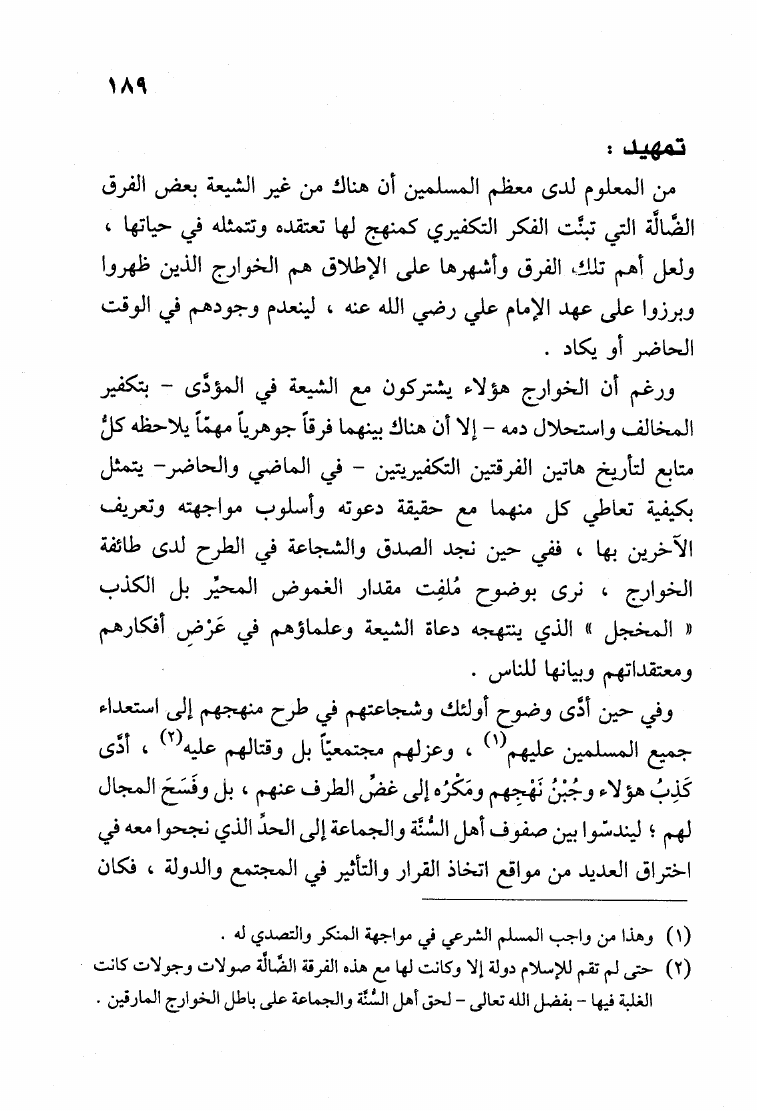 نام کتاب : الفكر التكفيري عند الشيعة حقيقة أم افتراء دراسة موثقة من مرويات الشيعة وتقريرات علمائهم أساساً ومحوراً لها في لفاطة اللثام عن هذه القضية الخطيرة نویسنده : عبد الملك بن عبد الرحمن الشافعي جلد : 1 صفحه : 189