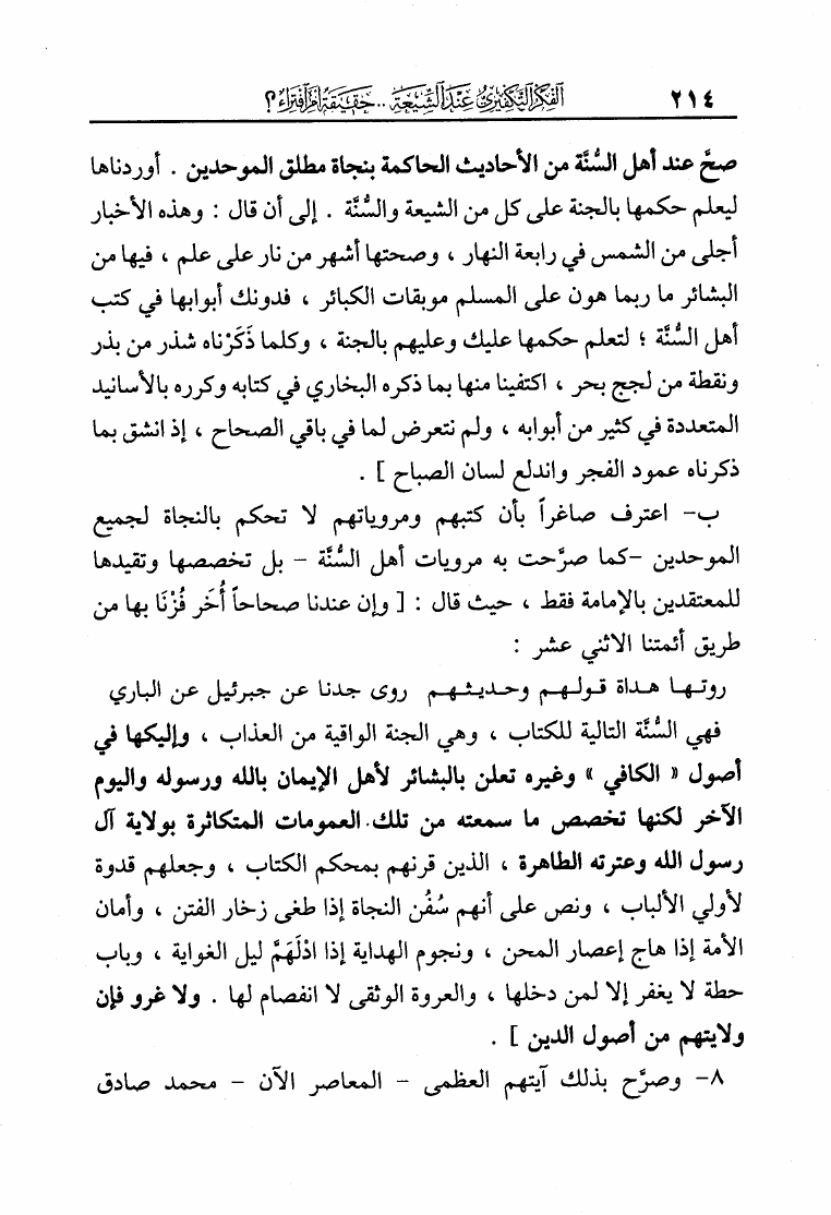 نام کتاب : الفكر التكفيري عند الشيعة حقيقة أم افتراء دراسة موثقة من مرويات الشيعة وتقريرات علمائهم أساساً ومحوراً لها في لفاطة اللثام عن هذه القضية الخطيرة نویسنده : عبد الملك بن عبد الرحمن الشافعي جلد : 1 صفحه : 214