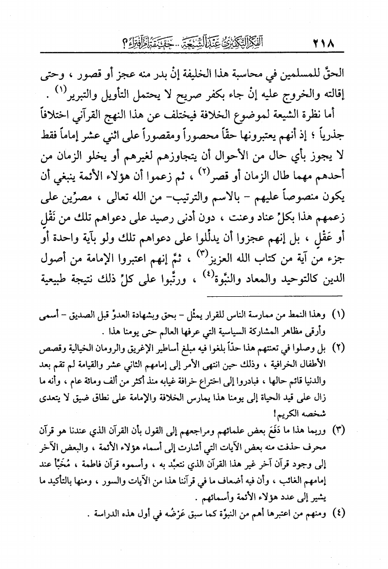 نام کتاب : الفكر التكفيري عند الشيعة حقيقة أم افتراء دراسة موثقة من مرويات الشيعة وتقريرات علمائهم أساساً ومحوراً لها في لفاطة اللثام عن هذه القضية الخطيرة نویسنده : عبد الملك بن عبد الرحمن الشافعي جلد : 1 صفحه : 218