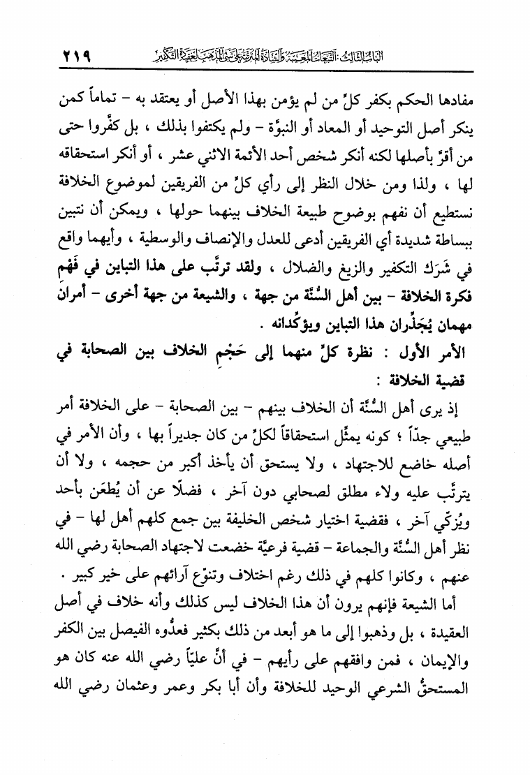 نام کتاب : الفكر التكفيري عند الشيعة حقيقة أم افتراء دراسة موثقة من مرويات الشيعة وتقريرات علمائهم أساساً ومحوراً لها في لفاطة اللثام عن هذه القضية الخطيرة نویسنده : عبد الملك بن عبد الرحمن الشافعي جلد : 1 صفحه : 219