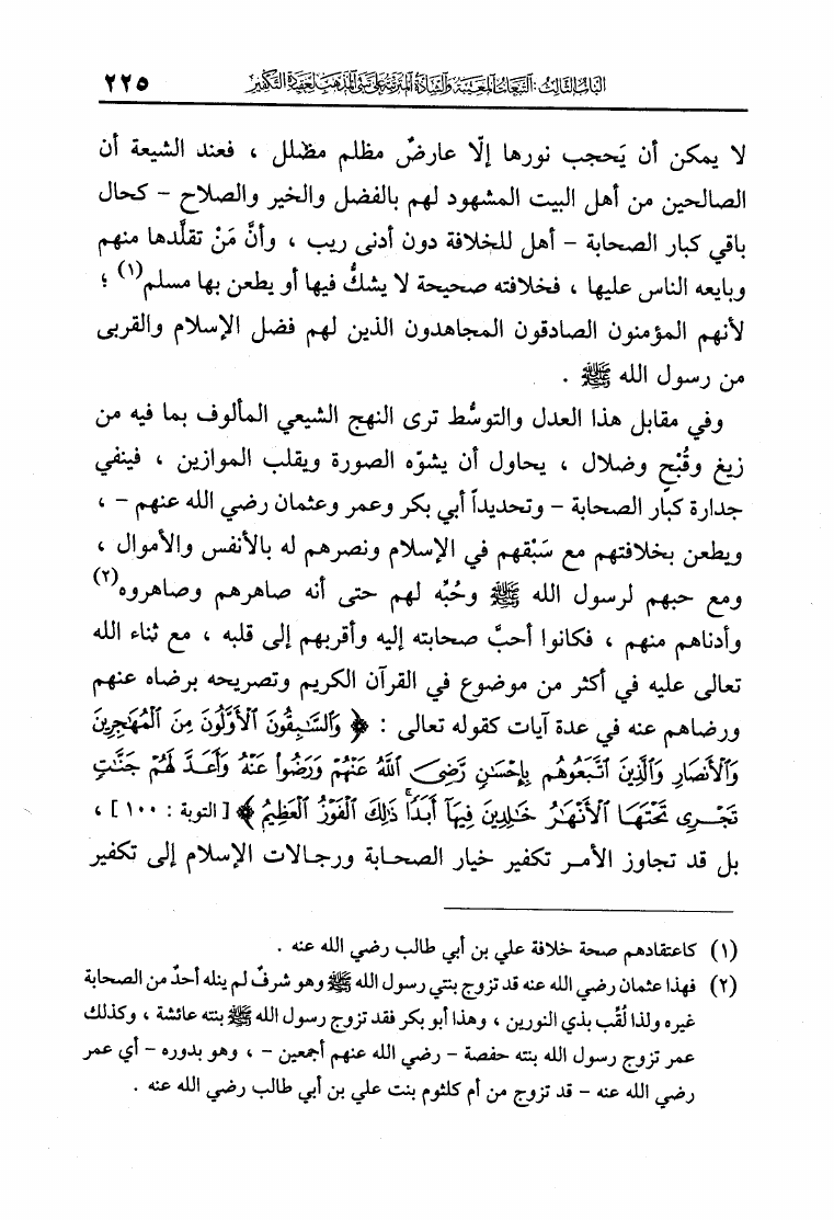 نام کتاب : الفكر التكفيري عند الشيعة حقيقة أم افتراء دراسة موثقة من مرويات الشيعة وتقريرات علمائهم أساساً ومحوراً لها في لفاطة اللثام عن هذه القضية الخطيرة نویسنده : عبد الملك بن عبد الرحمن الشافعي جلد : 1 صفحه : 225