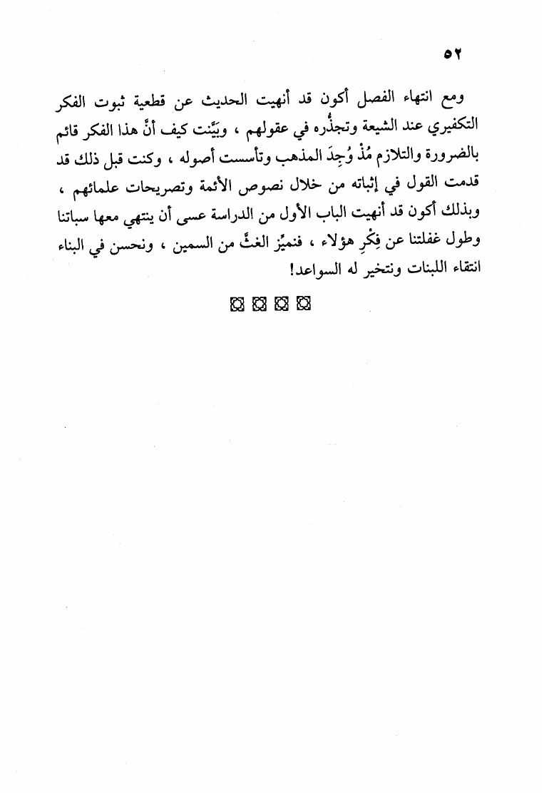 نام کتاب : الفكر التكفيري عند الشيعة حقيقة أم افتراء دراسة موثقة من مرويات الشيعة وتقريرات علمائهم أساساً ومحوراً لها في لفاطة اللثام عن هذه القضية الخطيرة نویسنده : عبد الملك بن عبد الرحمن الشافعي جلد : 1 صفحه : 52