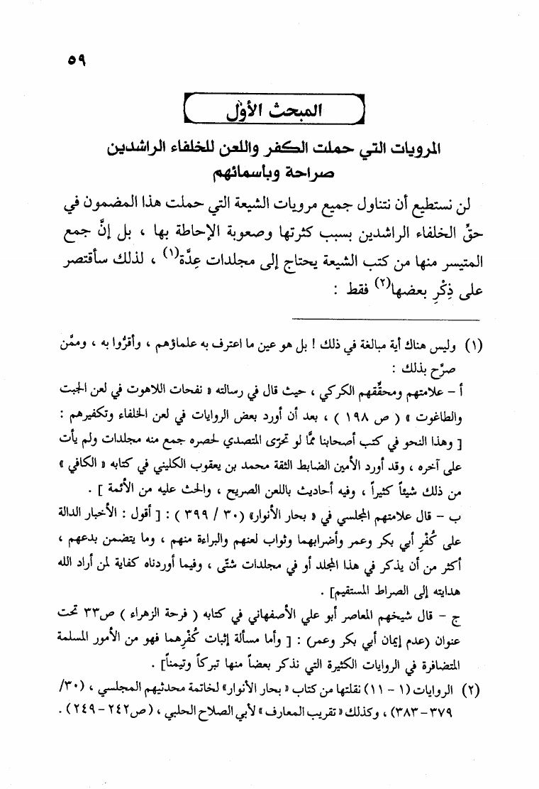 نام کتاب : الفكر التكفيري عند الشيعة حقيقة أم افتراء دراسة موثقة من مرويات الشيعة وتقريرات علمائهم أساساً ومحوراً لها في لفاطة اللثام عن هذه القضية الخطيرة نویسنده : عبد الملك بن عبد الرحمن الشافعي جلد : 1 صفحه : 59