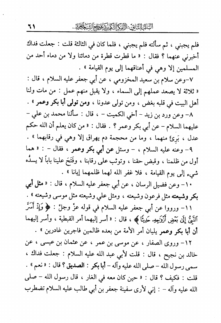 نام کتاب : الفكر التكفيري عند الشيعة حقيقة أم افتراء دراسة موثقة من مرويات الشيعة وتقريرات علمائهم أساساً ومحوراً لها في لفاطة اللثام عن هذه القضية الخطيرة نویسنده : عبد الملك بن عبد الرحمن الشافعي جلد : 1 صفحه : 61