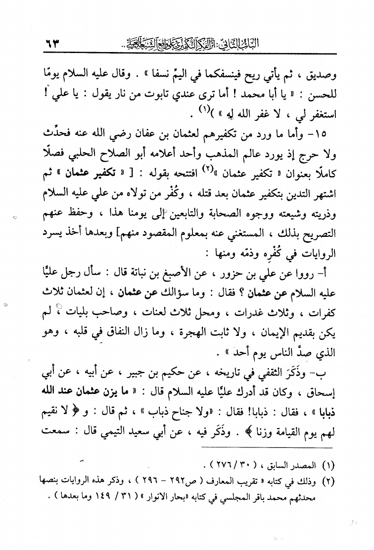 نام کتاب : الفكر التكفيري عند الشيعة حقيقة أم افتراء دراسة موثقة من مرويات الشيعة وتقريرات علمائهم أساساً ومحوراً لها في لفاطة اللثام عن هذه القضية الخطيرة نویسنده : عبد الملك بن عبد الرحمن الشافعي جلد : 1 صفحه : 63