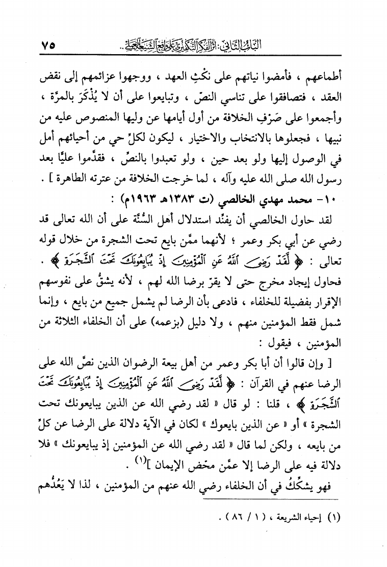 نام کتاب : الفكر التكفيري عند الشيعة حقيقة أم افتراء دراسة موثقة من مرويات الشيعة وتقريرات علمائهم أساساً ومحوراً لها في لفاطة اللثام عن هذه القضية الخطيرة نویسنده : عبد الملك بن عبد الرحمن الشافعي جلد : 1 صفحه : 75