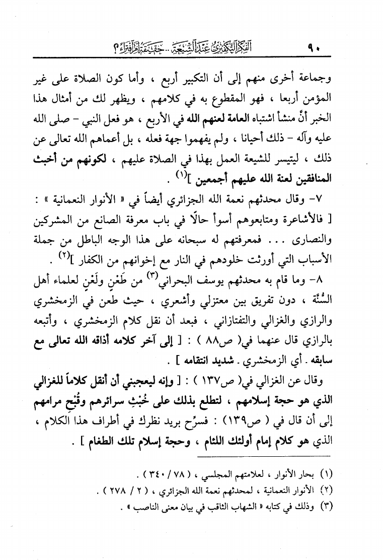 نام کتاب : الفكر التكفيري عند الشيعة حقيقة أم افتراء دراسة موثقة من مرويات الشيعة وتقريرات علمائهم أساساً ومحوراً لها في لفاطة اللثام عن هذه القضية الخطيرة نویسنده : عبد الملك بن عبد الرحمن الشافعي جلد : 1 صفحه : 90
