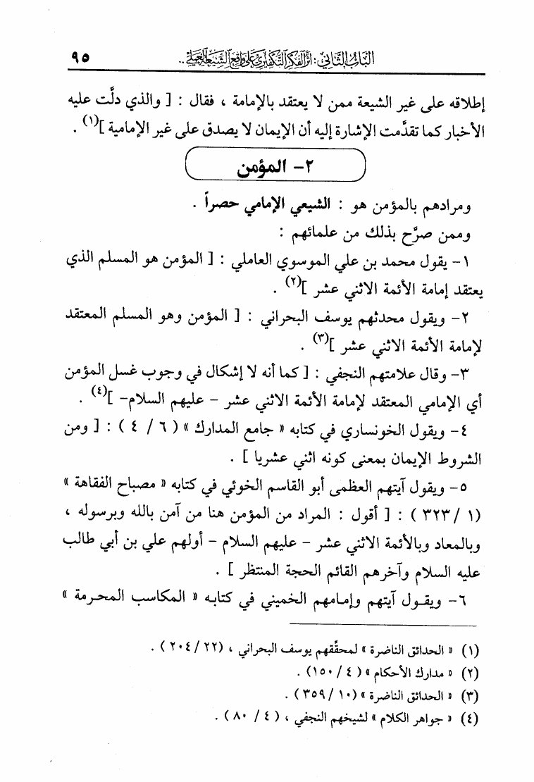 نام کتاب : الفكر التكفيري عند الشيعة حقيقة أم افتراء دراسة موثقة من مرويات الشيعة وتقريرات علمائهم أساساً ومحوراً لها في لفاطة اللثام عن هذه القضية الخطيرة نویسنده : عبد الملك بن عبد الرحمن الشافعي جلد : 1 صفحه : 95