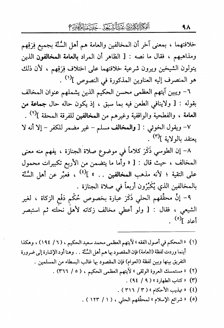 نام کتاب : الفكر التكفيري عند الشيعة حقيقة أم افتراء دراسة موثقة من مرويات الشيعة وتقريرات علمائهم أساساً ومحوراً لها في لفاطة اللثام عن هذه القضية الخطيرة نویسنده : عبد الملك بن عبد الرحمن الشافعي جلد : 1 صفحه : 98
