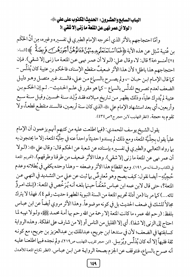 نام کتاب : الكافي الممتع المفيد والرد المفحم الملجم السديد على من صادم اعتقاده الوحيين السنة المطهرة والقرآن المجيد،،، زواج المتعة أم رواج المتعة نویسنده : يعقوب بدر القطامي جلد : 1 صفحه : 149