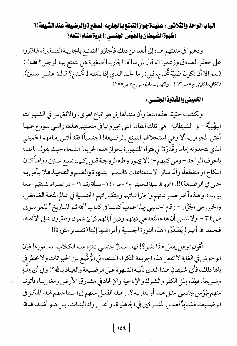نام کتاب : الكافي الممتع المفيد والرد المفحم الملجم السديد على من صادم اعتقاده الوحيين السنة المطهرة والقرآن المجيد،،، زواج المتعة أم رواج المتعة نویسنده : يعقوب بدر القطامي جلد : 1 صفحه : 159