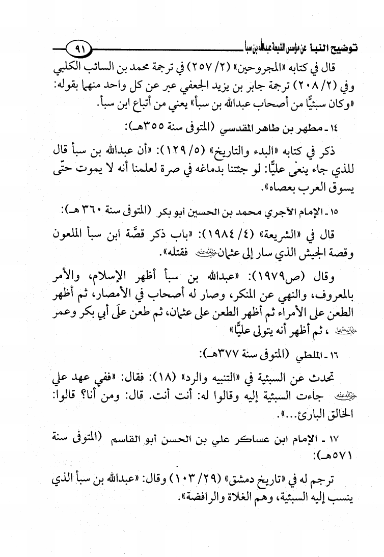 توضيح النبأ عن مؤسس الشيعة عبد الله بن سبأ