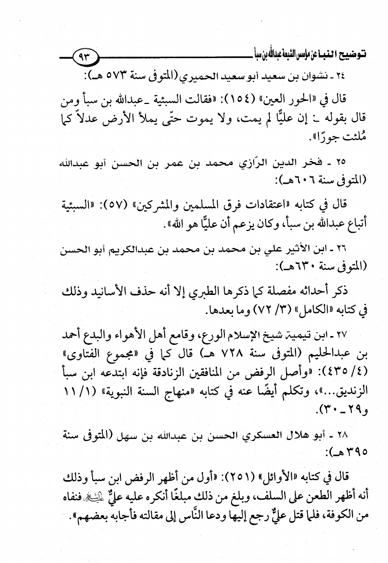 توضيح النبأ عن مؤسس الشيعة عبد الله بن سبأ