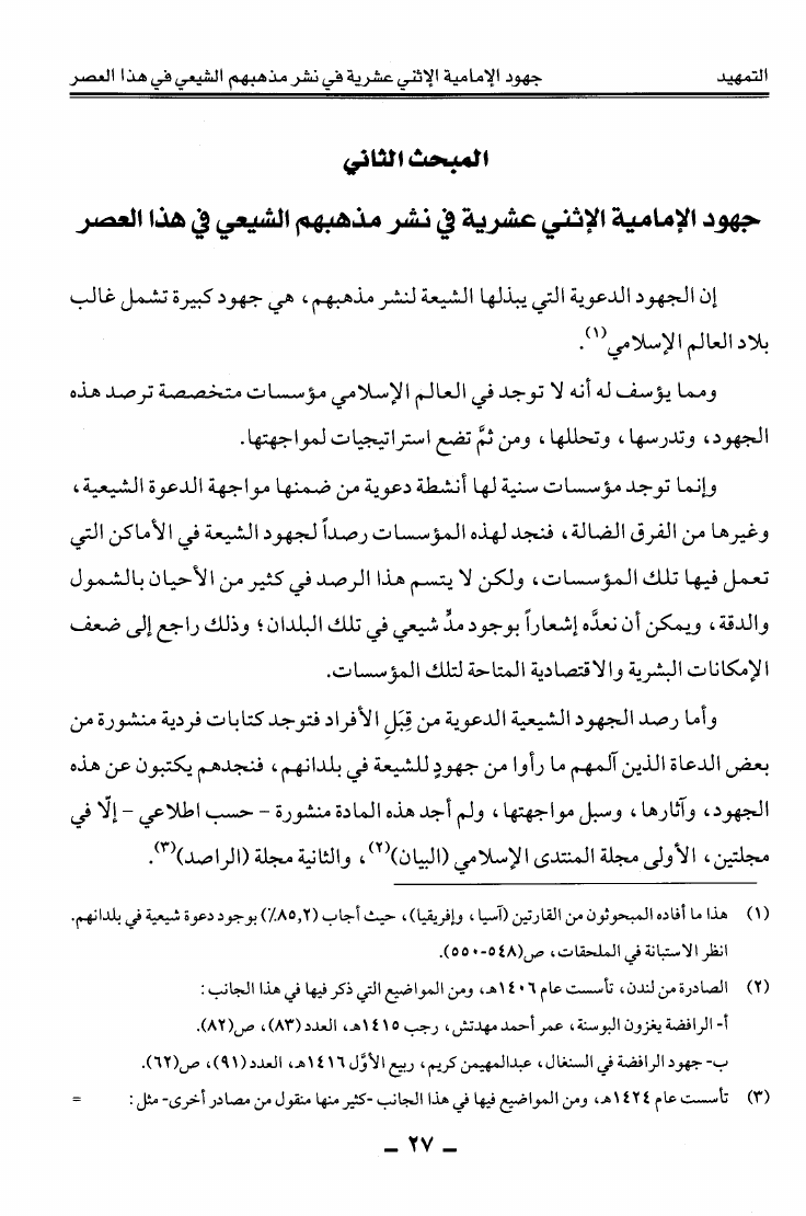 نام کتاب : دعوى التحول إلى مذهب الإمامية الاثني عشرية على شبكة المعلومات العالمية الانترنت عرض ونقد نویسنده : عبد الله بن منصور أبو حيمد جلد : 1 صفحه : 27