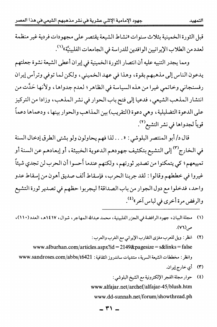 نام کتاب : دعوى التحول إلى مذهب الإمامية الاثني عشرية على شبكة المعلومات العالمية الانترنت عرض ونقد نویسنده : عبد الله بن منصور أبو حيمد جلد : 1 صفحه : 31
