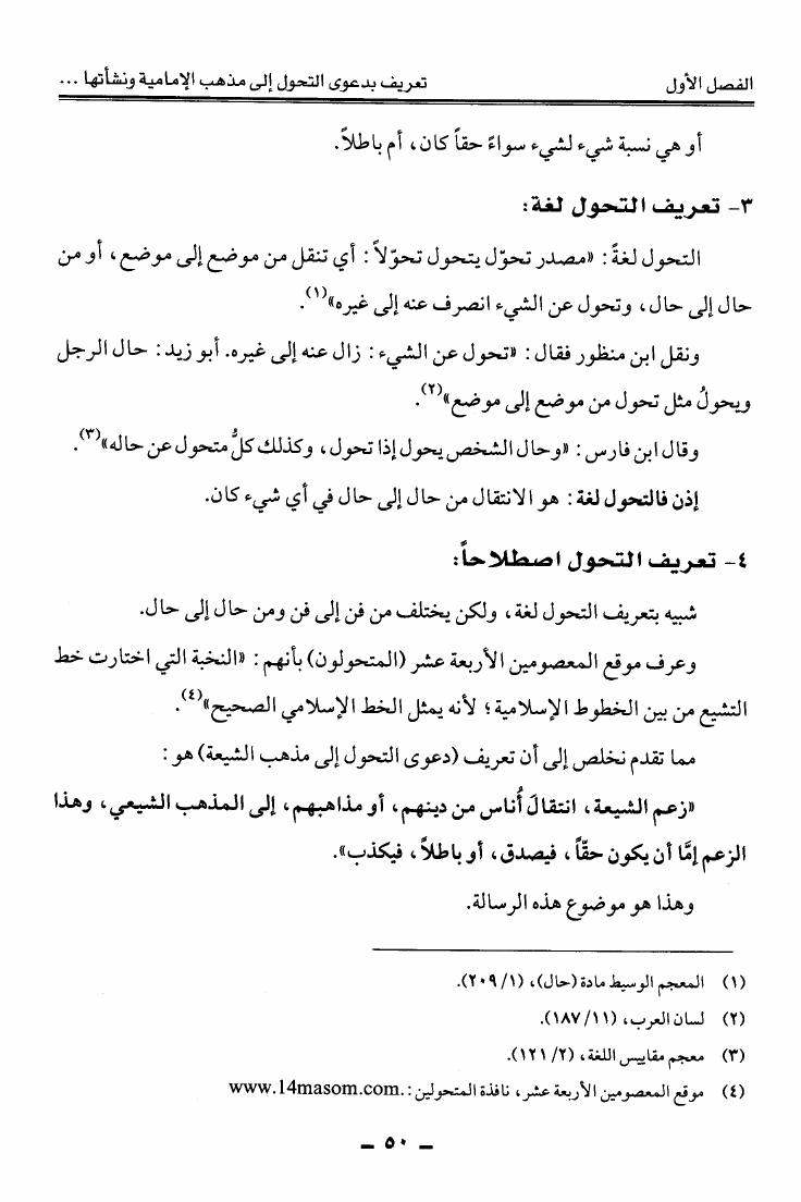 نام کتاب : دعوى التحول إلى مذهب الإمامية الاثني عشرية على شبكة المعلومات العالمية الانترنت عرض ونقد نویسنده : عبد الله بن منصور أبو حيمد جلد : 1 صفحه : 50