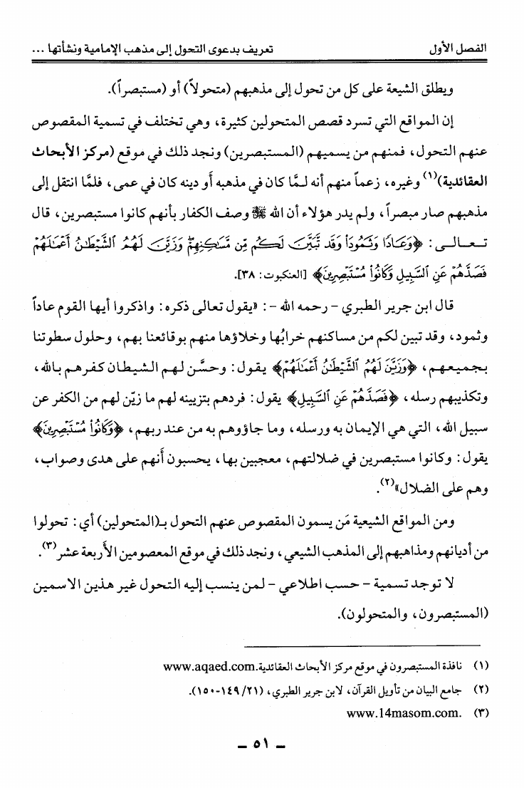نام کتاب : دعوى التحول إلى مذهب الإمامية الاثني عشرية على شبكة المعلومات العالمية الانترنت عرض ونقد نویسنده : عبد الله بن منصور أبو حيمد جلد : 1 صفحه : 51
