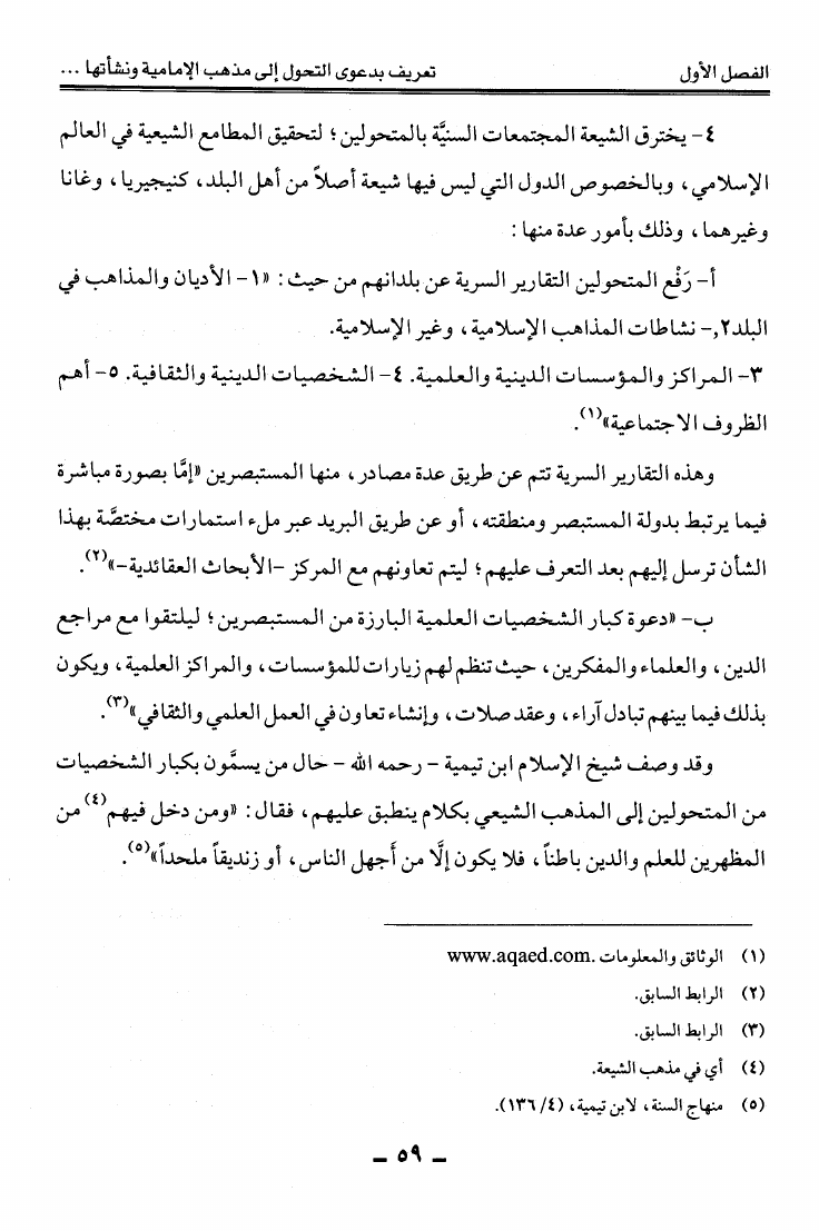 نام کتاب : دعوى التحول إلى مذهب الإمامية الاثني عشرية على شبكة المعلومات العالمية الانترنت عرض ونقد نویسنده : عبد الله بن منصور أبو حيمد جلد : 1 صفحه : 59