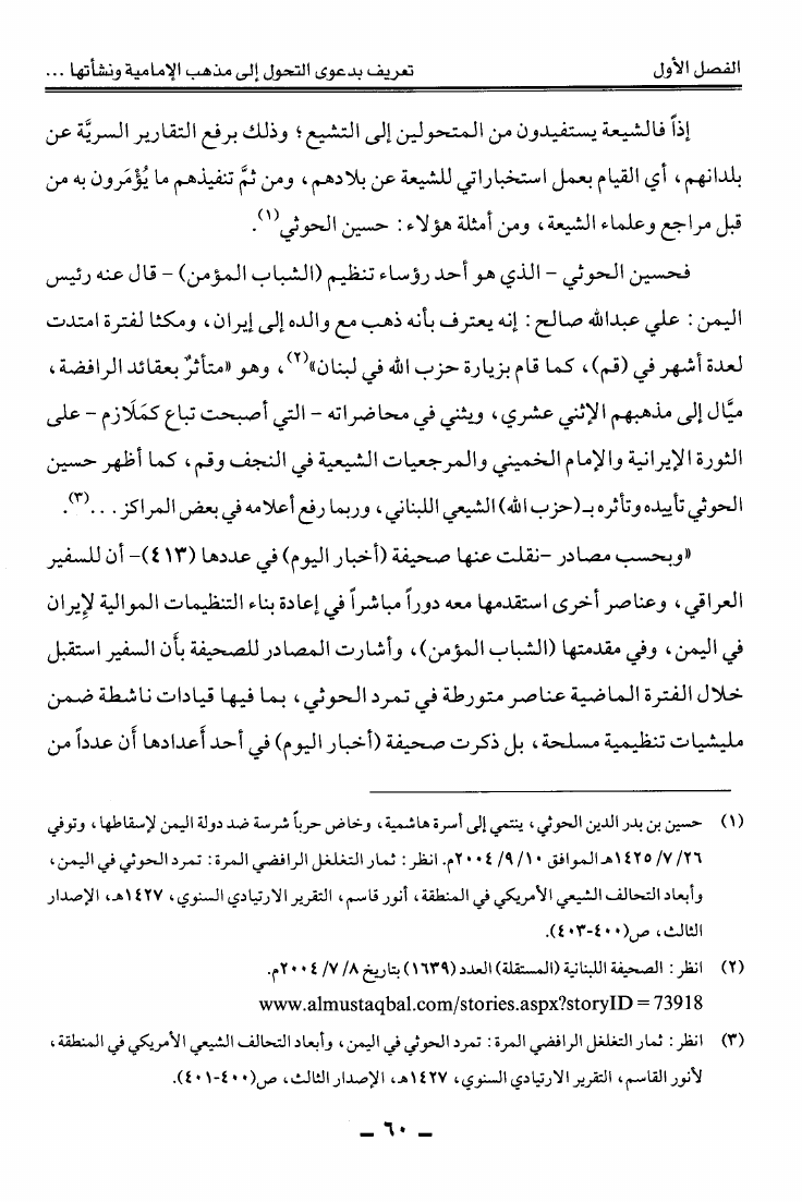 نام کتاب : دعوى التحول إلى مذهب الإمامية الاثني عشرية على شبكة المعلومات العالمية الانترنت عرض ونقد نویسنده : عبد الله بن منصور أبو حيمد جلد : 1 صفحه : 60