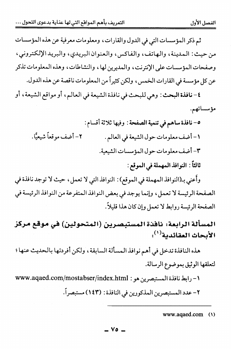 نام کتاب : دعوى التحول إلى مذهب الإمامية الاثني عشرية على شبكة المعلومات العالمية الانترنت عرض ونقد نویسنده : عبد الله بن منصور أبو حيمد جلد : 1 صفحه : 75