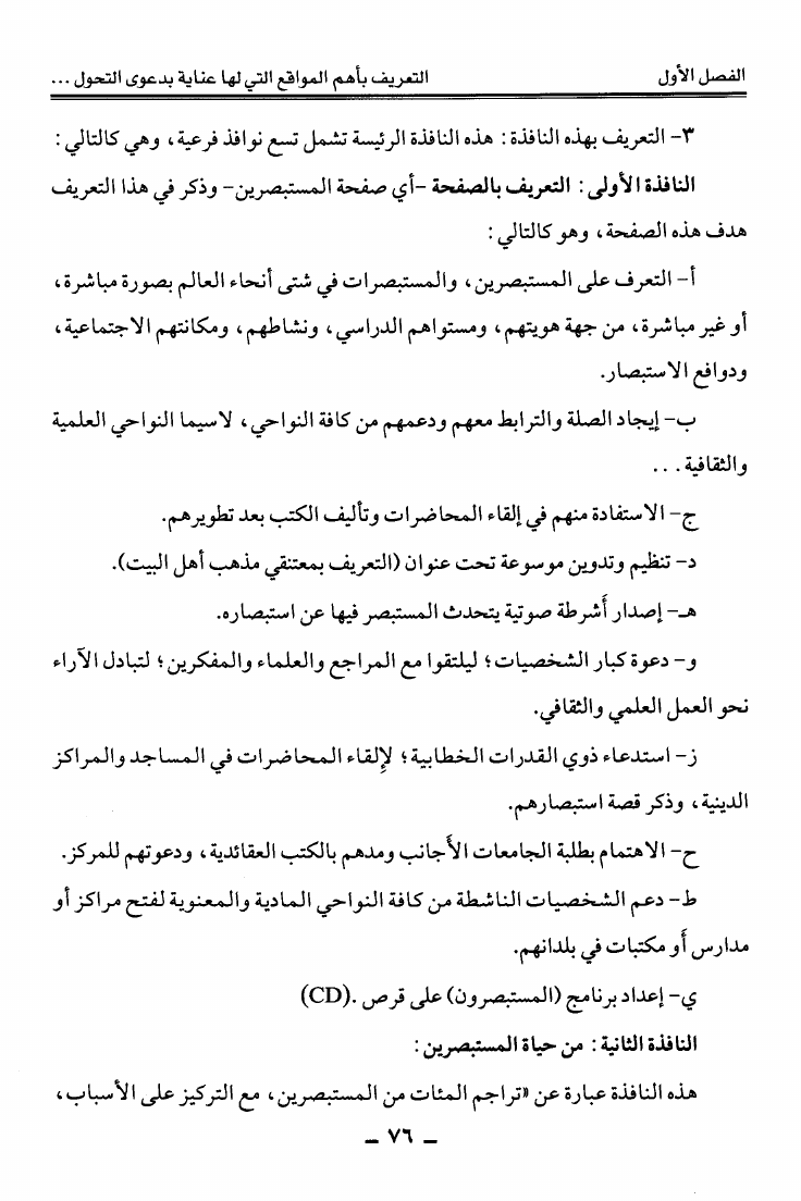 نام کتاب : دعوى التحول إلى مذهب الإمامية الاثني عشرية على شبكة المعلومات العالمية الانترنت عرض ونقد نویسنده : عبد الله بن منصور أبو حيمد جلد : 1 صفحه : 76