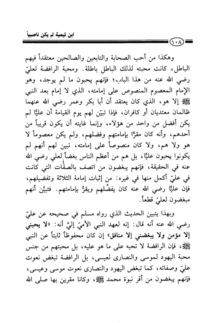 شيخ الإسلام ابن تيمية لم يكن ناصبياً