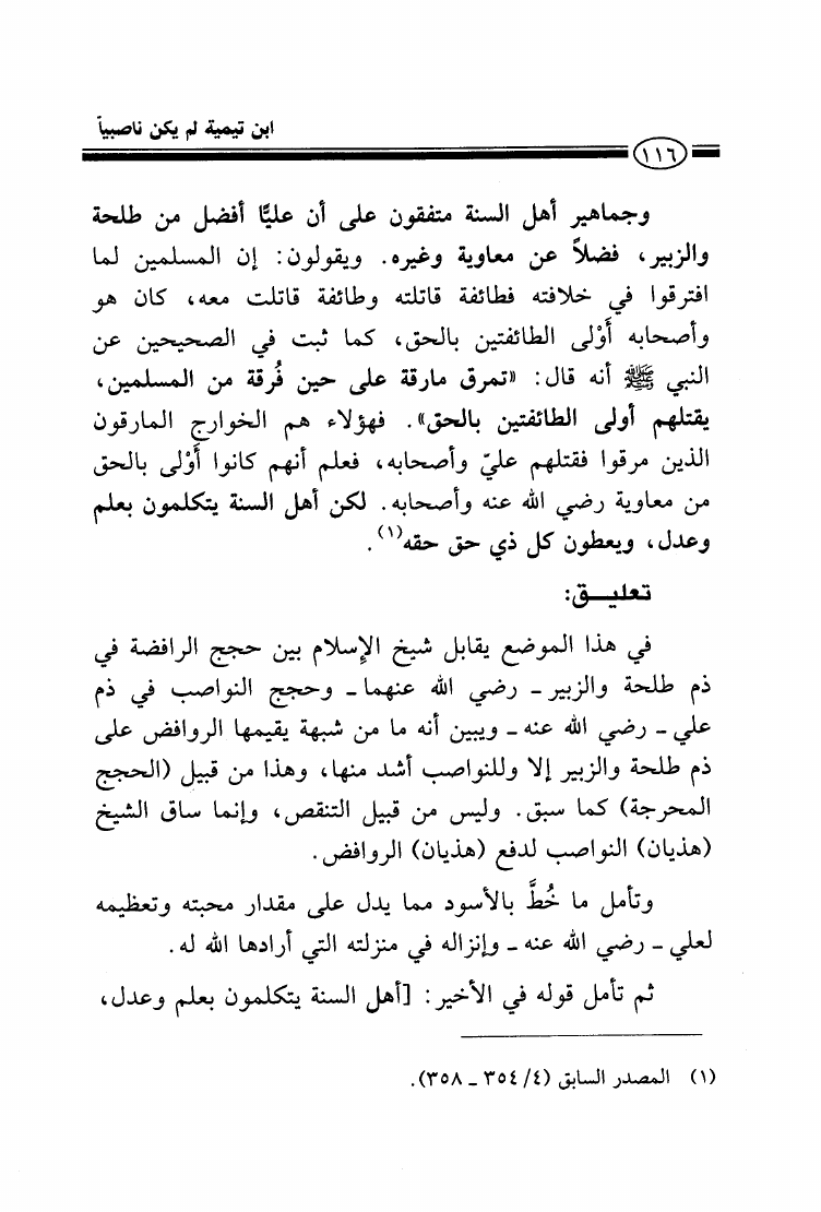 شيخ الإسلام ابن تيمية لم يكن ناصبياً