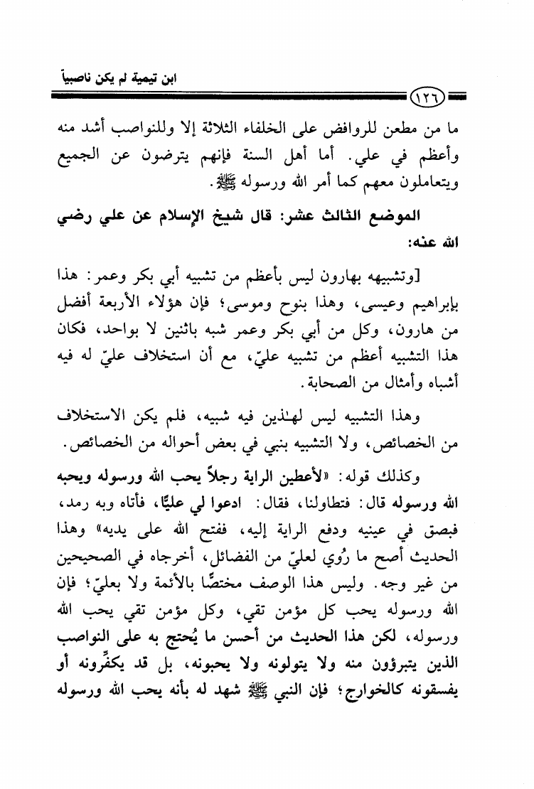شيخ الإسلام ابن تيمية لم يكن ناصبياً