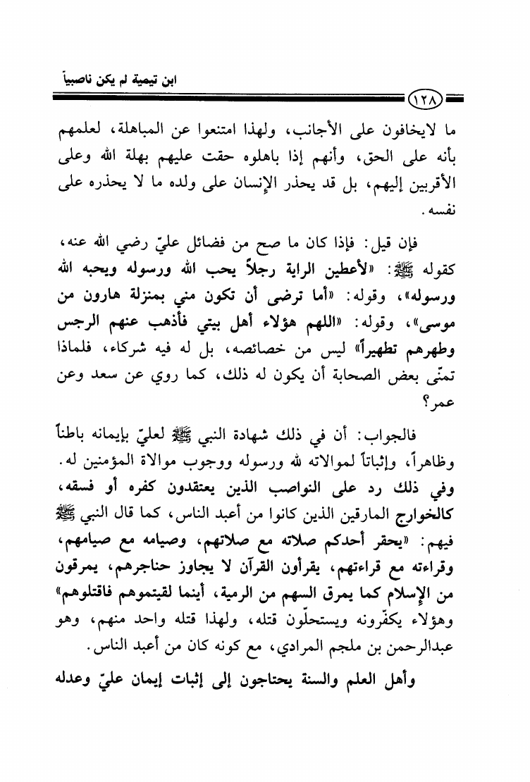 شيخ الإسلام ابن تيمية لم يكن ناصبياً