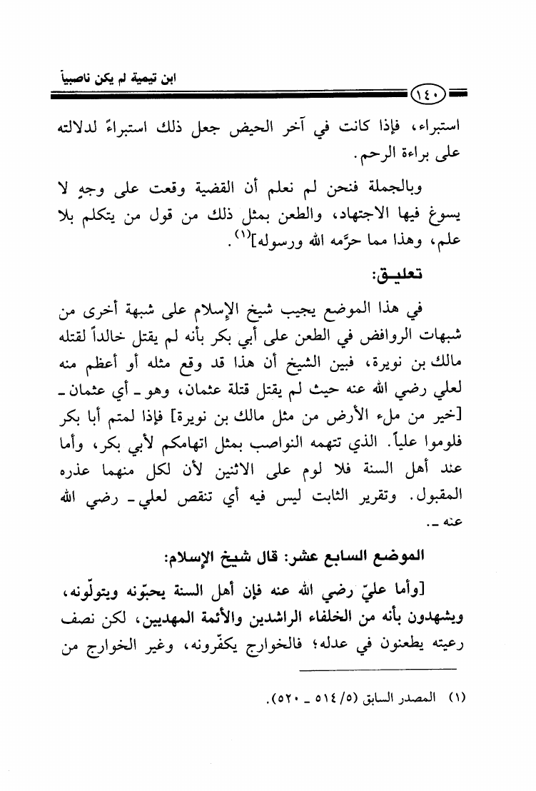 شيخ الإسلام ابن تيمية لم يكن ناصبياً