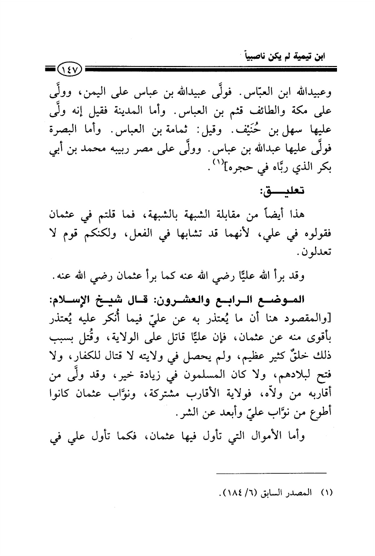 شيخ الإسلام ابن تيمية لم يكن ناصبياً