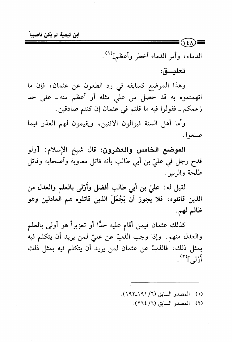 شيخ الإسلام ابن تيمية لم يكن ناصبياً