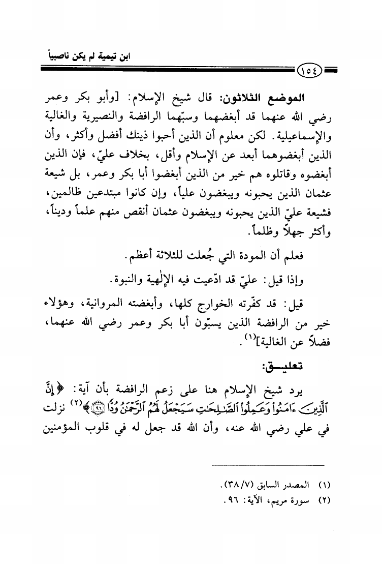 شيخ الإسلام ابن تيمية لم يكن ناصبياً