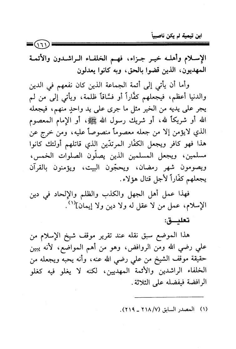 شيخ الإسلام ابن تيمية لم يكن ناصبياً