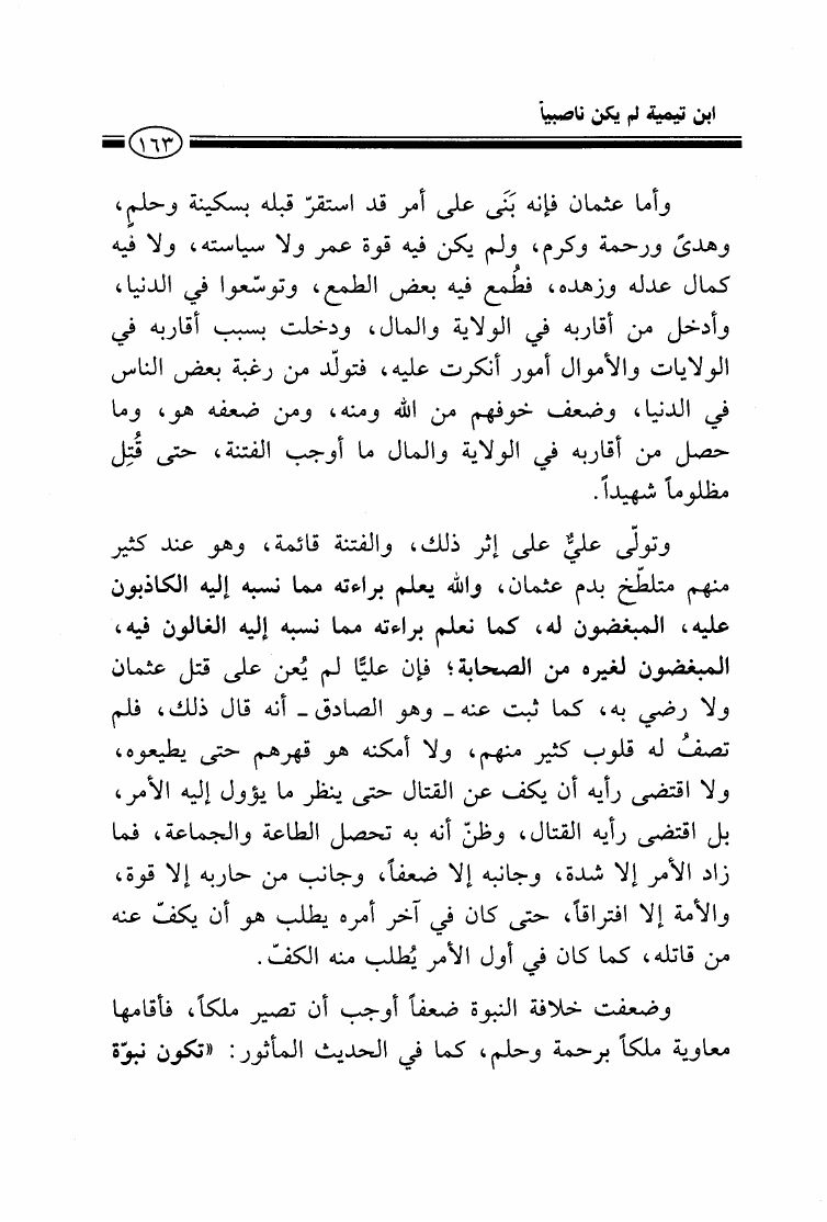 شيخ الإسلام ابن تيمية لم يكن ناصبياً