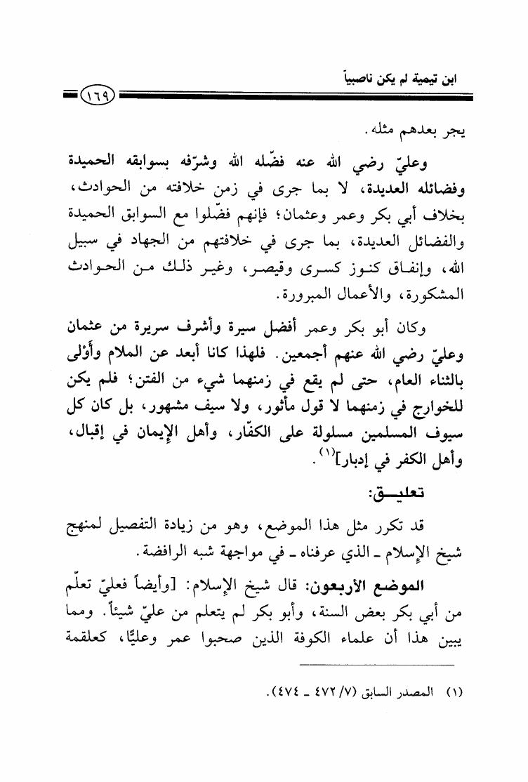 شيخ الإسلام ابن تيمية لم يكن ناصبياً