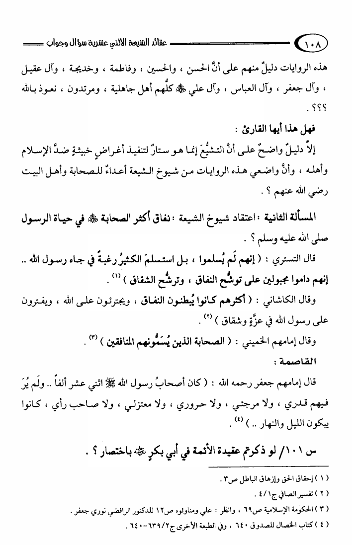 عقائد الشيعة الإثني عشرية سؤال وجواب