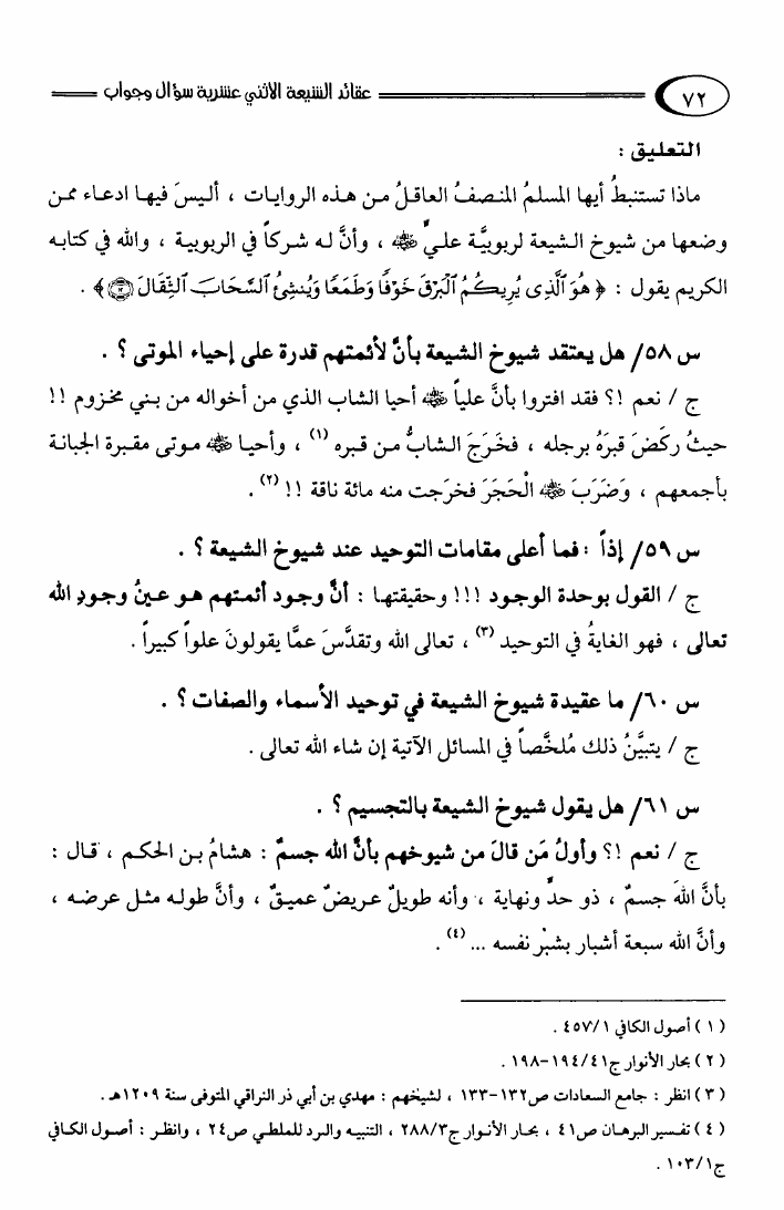 عقائد الشيعة الإثني عشرية سؤال وجواب