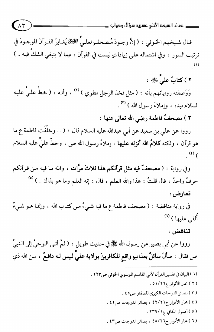 عقائد الشيعة الإثني عشرية سؤال وجواب