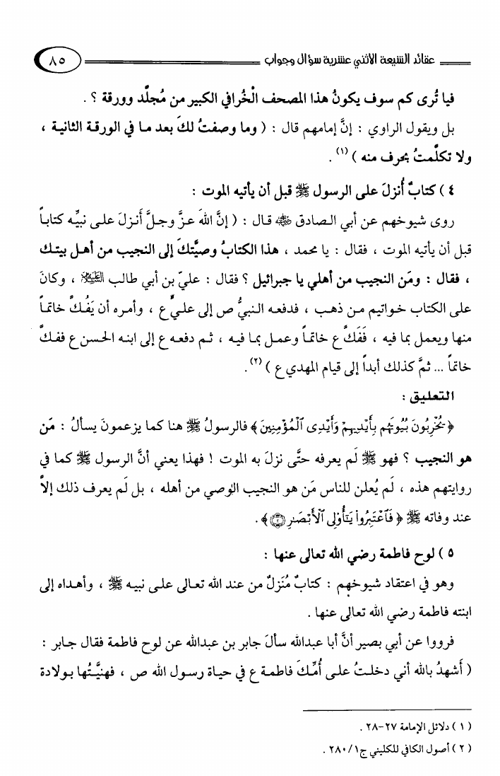 عقائد الشيعة الإثني عشرية سؤال وجواب