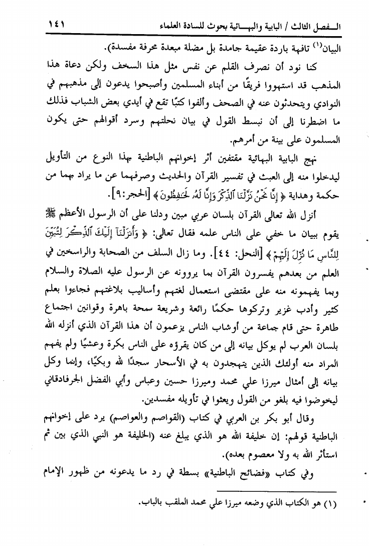 الرد على الشيعة والباطنية والبهائية والقاديانية