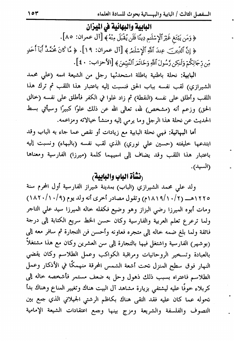 الرد على الشيعة والباطنية والبهائية والقاديانية