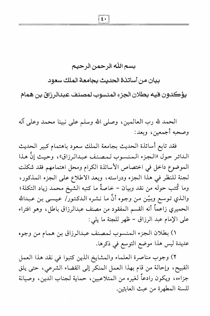 مجموع في كشف حقيقة الجزء المفقود المزعوم من مصنف عبد الرزاق