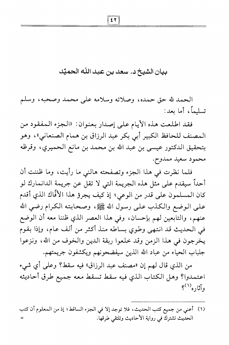 مجموع في كشف حقيقة الجزء المفقود المزعوم من مصنف عبد الرزاق