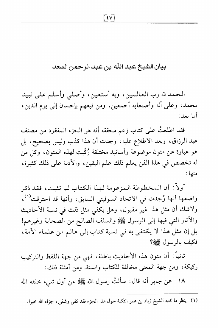مجموع في كشف حقيقة الجزء المفقود المزعوم من مصنف عبد الرزاق