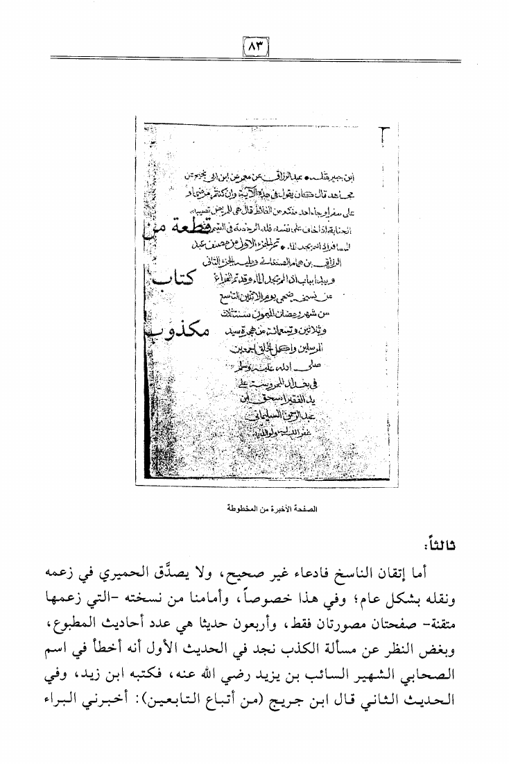مجموع في كشف حقيقة الجزء المفقود المزعوم من مصنف عبد الرزاق