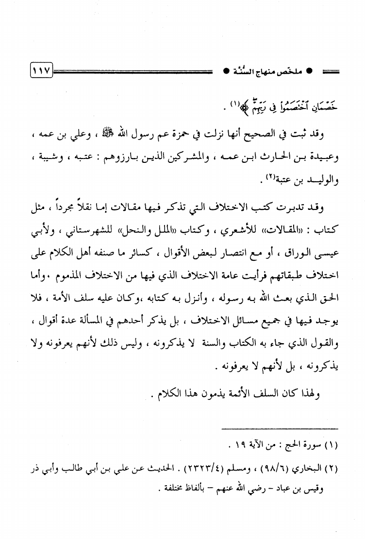 ملخص منهاج السنة ويليه فتاوى للشيخ عبد الرحمن بن حسن
