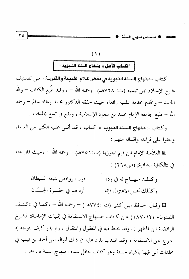 ملخص منهاج السنة ويليه فتاوى للشيخ عبد الرحمن بن حسن